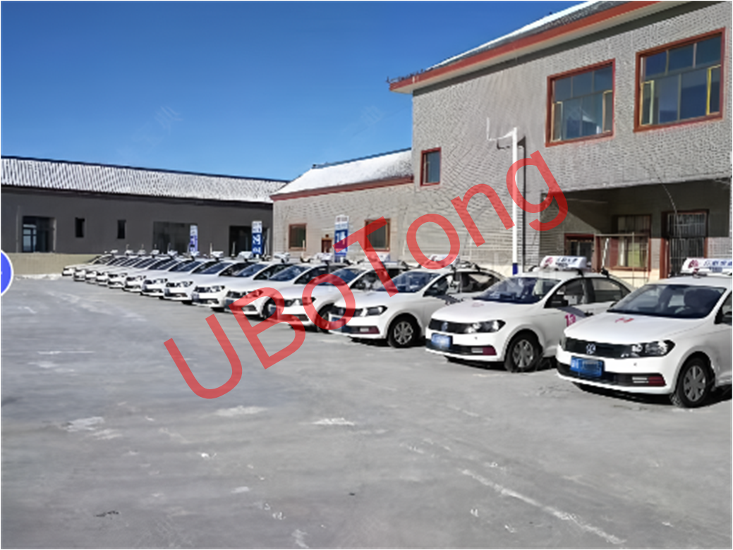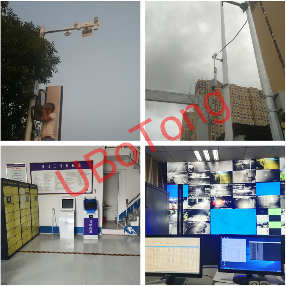 针对本方案中涉及到的考试线路,中间有掉头和转弯存在,这对基站架设位置提出了要求。但为节约警力、加强考试过程中的监管力度和实时数据的采集,决定采用了自动化的考试系统。其中出发地址为驾校监控中心位置,考试车辆9辆,根据考试线路、考试车数量等因素,设计在驾校及考试范围内架设了5.8G 电信级大功率无线基站,基站之间分布着合适的距离,以保证考试车辆在高速行驶中达到良好的无缝漫游传输效果。UBotong室外智能基站覆盖范围大,带宽和接入容量高,快速漫游切换机制,同频组网技术,无缝漫游视频优化处理等,保证考试车辆上的监控视频、语音和各种传感器的数据稳定传输,从而让电子考试系统准确、可靠的运行。再通过光纤将基站接收到的数据传回监控中心,通过硬盘录像机、解码器、分频器等设备输出在电视墙上,并实时把车载机的位置、考试路段、成绩情况等数据显示在电视墙上。