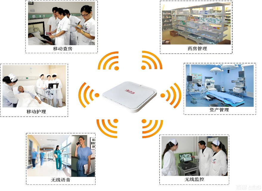 Ø WiFi无线网络平台,可同时进行医院各种数据、定位、语音、视频等应用的传输;