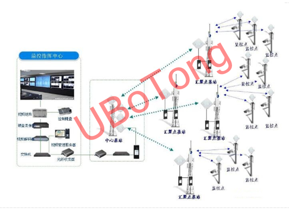 石油行业无线监控系统主要包括三个部分:前端监控点、无线传输部分和后端监控中心。