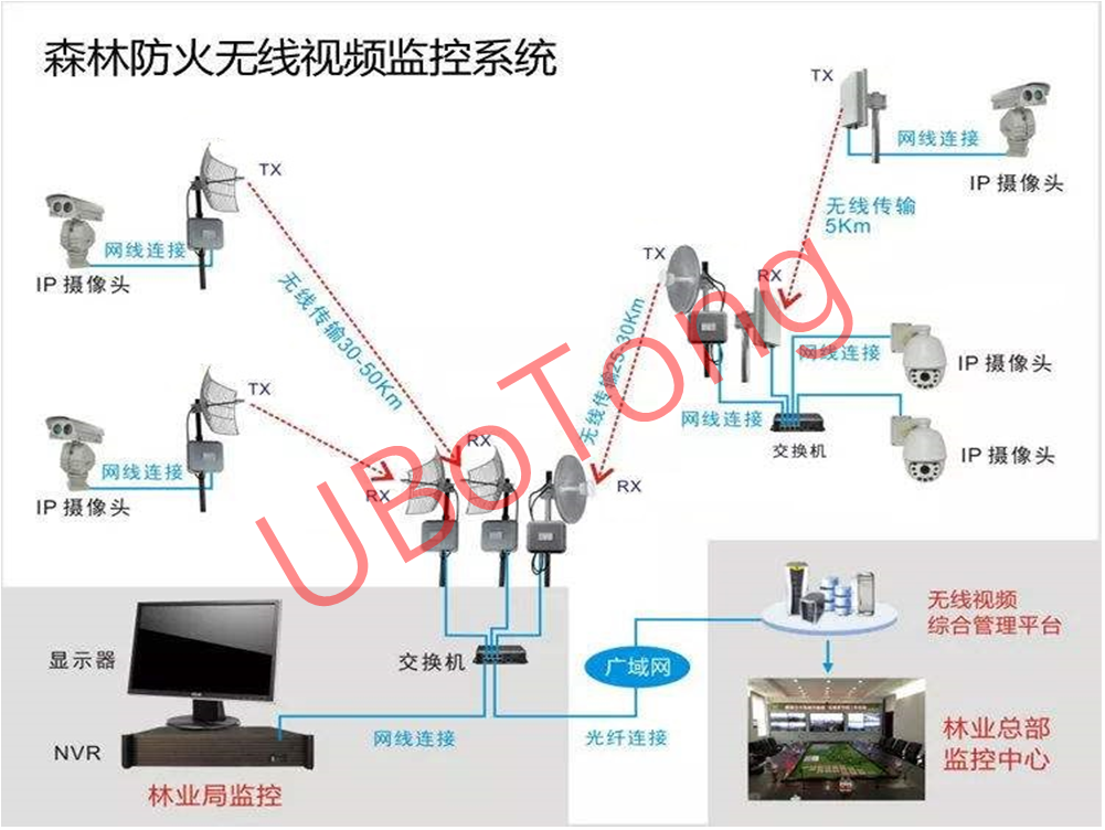 随着无线通讯技术的快速发展,以及政府对森林防火意识的迅速提高,逐渐认识到,采用无线监控的方式对森林资源进行实时监控、预防和及时发现、处理火情。实现了森林防火工作的规范化、科学化、信息化,并贯彻“预防为主,积极扑救的方针”,真正做到早发现,早解决。UBoTong公司针对森林防火提出了无线远距离实时图像监控的合理化建议。