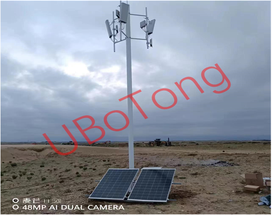 光伏矩阵间依托立杆安装的无线MESH覆盖基站对整个光伏矩阵区域全覆盖的蜂窝式移动接入网络,并在升压站站点部署一套无线管理系统,涵盖汇聚交换机、网络管理系统、无线MESH覆盖基站等,最终实现光伏场区内的无线覆盖。