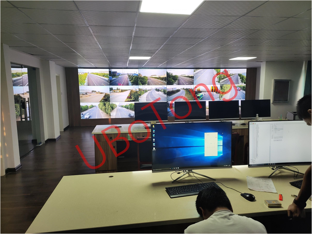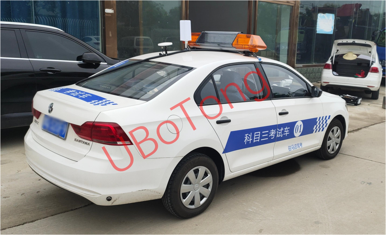 针对本方案中涉及到的考试线路,中间有 1 个掉头和转弯存在,这对基站架设位置提出了要求。但为节约警力、加强考试过程中的监管力度和实时数据的采集,决定采用了自动化的考试系统。其中出发地址为驾校监控中心位置,考试车辆预设计 8辆,根据考试线路、考试车数量等因素,设计在驾校及考试范围内架设了5.8G 电信级大功率无线基站,基站之间分布着合适的距离,以保证考试车辆在高速行驶中达到良好的无缝漫游传输效果。UBotong室外智能基站覆盖范围大,带宽和接入容量高,快速漫游切换机制,同频组网技术,无缝漫游视频优化处理等,保证考试车辆上的监控视频、语音和各种传感器的数据稳定传输,从而让电子考试系统准确、可靠的运行。再通过光纤将基站接收到的数据传回监控中心,通过硬盘录像机、解码器、分频器等设备输出在电视墙上,并实时把车载机的位置、考试路段、成绩情况等数据显示在电视墙上。