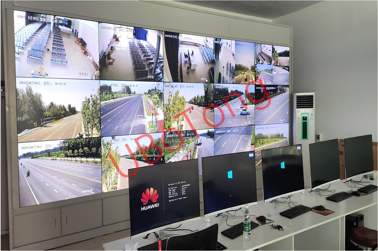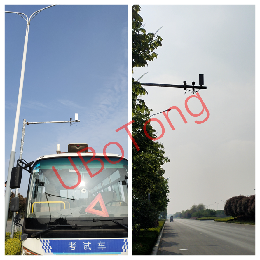 针对本方案中涉及到的考试线路,中间有 1 个掉头和转弯存在,这对基站架设位置提出了要求。但为节约警力、加强考试过程中的监管力度和实时数据的采集,决定采用了自动化的考试系统。其中出发地址为驾校监控中心位置,考试车辆预设计 8辆,根据考试线路、考试车数量等因素,设计在驾校及考试范围内架设了5.8G 电信级大功率无线基站,基站之间分布着合适的距离,以保证考试车辆在高速行驶中达到良好的无缝漫游传输效果。UBotong室外智能基站覆盖范围大,带宽和接入容量高,快速漫游切换机制,同频组网技术,无缝漫游视频优化处理等,保证考试车辆上的监控视频、语音和各种传感器的数据稳定传输,从而让电子考试系统准确、可靠的运行。再通过光纤将基站接收到的数据传回监控中心,通过硬盘录像机、解码器、分频器等设备输出在电视墙上,并实时把车载机的位置、考试路段、成绩情况等数据显示在电视墙上。