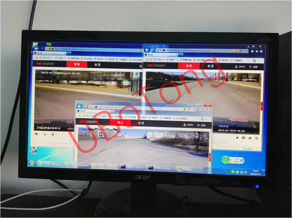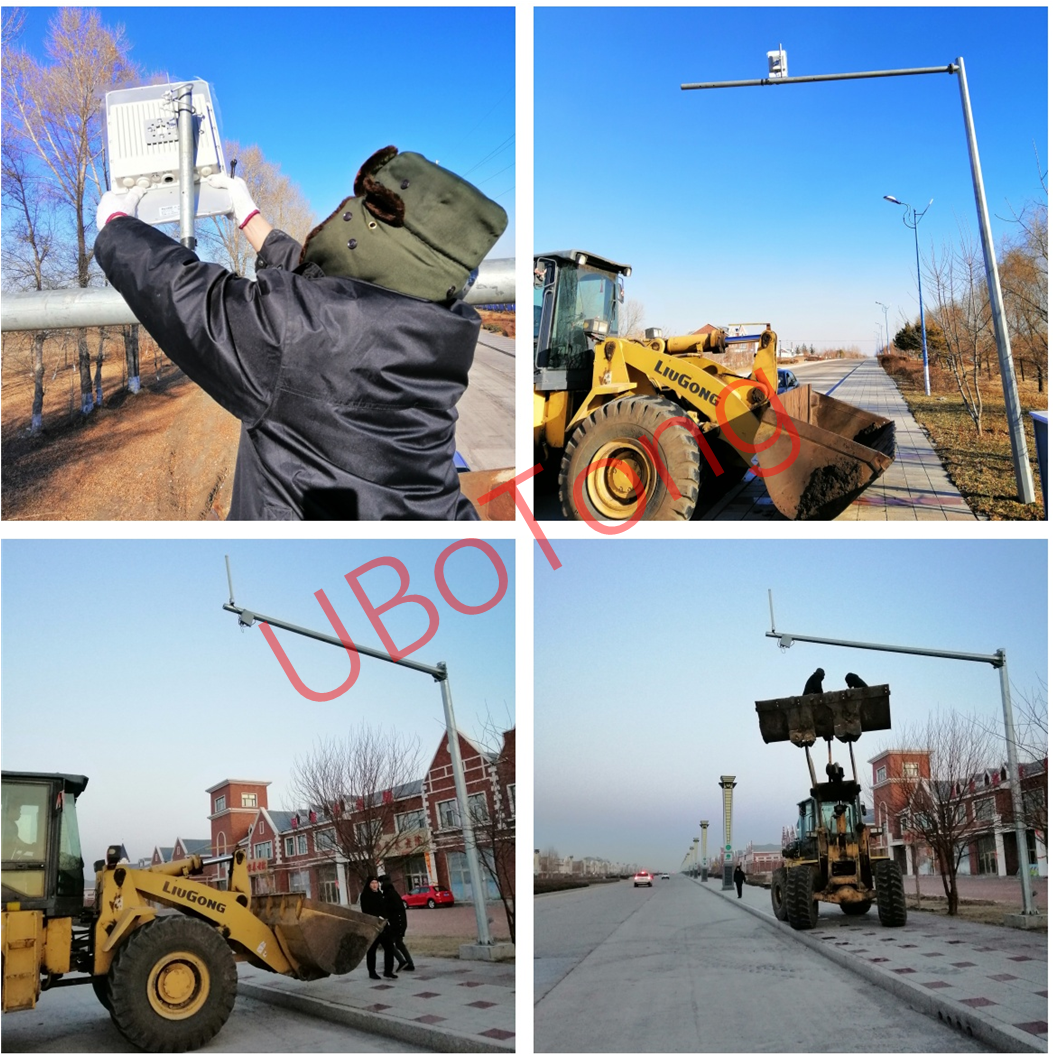 针对本方案中涉及到的考试线路,中间有掉头和转弯存在,这对基站架设位置提出了要求。但为节约警力、加强考试过程中的监管力度和实时数据的采集,决定采用了自动化的考试系统。其中出发地址为驾校监控中心位置,考试车辆预预计8辆,根据考试线路、考试车数量等因素,设计在驾校及考试范围内架设了5.8G 电信级大功率无线基站,基站之间分布着合适的距离,以保证考试车辆在高速行驶中达到良好的无缝漫游传输效果。UBotong室外智能基站覆盖范围大,带宽和接入容量高,快速漫游切换机制,同频组网技术,无缝漫游视频优化处理等,保证考试车辆上的监控视频、语音和各种传感器的数据稳定传输,从而让电子考试系统准确、可靠的运行。再通过光纤将基站接收到的数据传回监控中心,通过硬盘录像机、解码器、分频器等设备输出在电视墙上,并实时把车载机的位置、考试路段、成绩情况等数据显示在电视墙上。